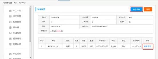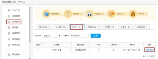 3、如果是立刻转运的订单的话,就会进入【未到齐】页面,也会同时存在在【待入库】页面。点击查看可核对信息,订单信息跟出货渠道这些都可以进行修改。