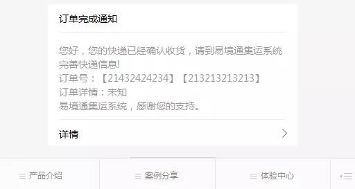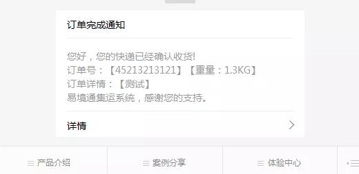 1、货物到达仓库,仓库扫描入库之后,客户的微信端会收到收货的消息提醒。