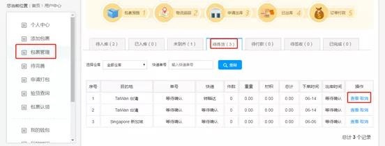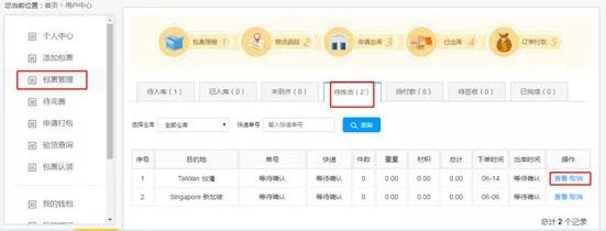 如果暂时不想出的话,也可以点击【取消】,先取消申请打包的订单,回到申请打包页面。